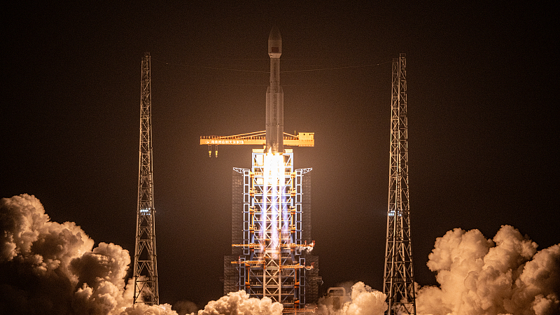 Raketa kineze Long March-8A Y8 transportohet në platformën e lëshimit në Kinën jugore