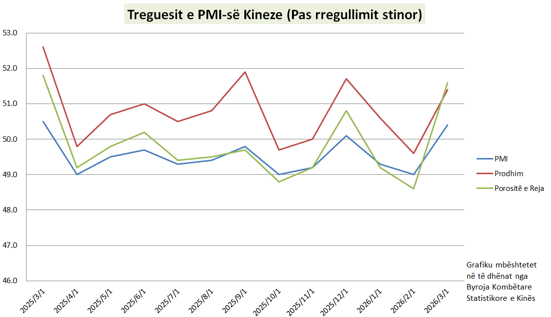 Statistikat: Treguesit kryesorë të PMI-së të Kinës përmirësohen dukshëm në mars15:01:15 2026-04-03ShareLAJMET KRYESOREWang Yi: Armëpushimi është zgjidhje themelore për të siguruar lundrimin në ngushticën e HormuzitArmëpushimi dhe përfundimi i armiqësive në Lindjen e Mesme përfaqësojnë thirrjen e fortë të bashkësisë ndërkombëtare dhe përbëjnë zgjidhjen themelore për të siguruar lundrim të sigurt në Ngushticën e Hormuzit, tha të enjten ministri i Jashtëm kinez Wang Yi.03-Apr-2026LAJME TË NGJASHMEPrincesha e Tajlandës Sirindhorn do të vizitojë Kinën në datat 4 - 11 prillPrincesha Maha Chakri Sirindhorn e Mbretërisë së Tajlandës do të vizitojë Kinën nga 4 deri në 11 prill me ftesë të qeverisë kineze, njoftoi të premten një zëdhënës i Ministrisë së Jashtme.03-Apr-2026Princesha e Tajlandës Sirindhorn do të vizitojë Kinën në datat 4 - 11 prillLi Qiang i dërgon mesazh urimi Kryeministrit të sapoemëruar të Mongolisë, Nyamosor UchralTË TJERA NGA CGTNRevolucioni doganor nga sporteli tek ekrani: Dritarja e vetme shkurton kostot dhe kohën për bizneset1Revolucioni doganor nga sporteli tek ekrani: Dritarja e vetme shkurton kostot dhe kohën për bizneset2Shqipëria në vendit e 9-të të Indeksit Global të Sigurisë Kibernetike3Kinë, publikohen masa të reja për shtimin e konsumit të të huajve4Tregu i punës në epokën e AI